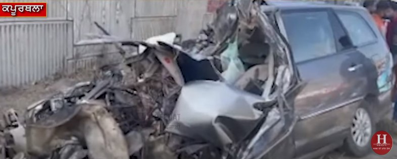 ਦਿਲ ਨੂੰ ਝੰਜੋੜ ਕੇ ਰੱਖ ਦੇਣ ਵਾਲੀਆਂ ਇਹ ਤਸਵੀਰਾਂ ਜਿਲ੍ਹਾ ਕਪੂਰਥਲਾ ਦੇ ਥਾਣਾ ਸੁਭਾਨਪੁਰ ਅਧੀਨ ਆਉਦੇ ਪਿੰਡ ਹਮੀਰਾ ਫਲਾਈਓਵਰ ਦੀਆਂ ਨੇ, ਜਿੱਥੇ ਲਿਫਾਫੇ ਵਾਂਗ ਇਕੱਠੀ ਹੋਈ ਇਹ ਗੱਡੀ ਨਜ਼ਰ ਆ ਰਹੀ ਹੈ | ਬੀਤੀ ਦੇਰ ਰਾਤ ਇੱਕ ਇਨੋਵਾ ਕਾਰ ਜਿਸ ਵਿਚ ਪੁਲਿਸ ਮੁਲਾਜ਼ਮ ਸਣੇ ਕੁੱਲ 5 ਵਿਅਕਤੀ ਸਵਾਰ ਸਨ ਜੋ ਕਿ ਅਮ੍ਰਿੰਤਸਰ ਤਰਫੋਂ ਜਲੰਧਰ ਵੱਲ ਜਾ ਰਹੇ ਸਨ | ਅਚਾਨਕ ਇੱਕ ਭਾਰੀ ਅਣਪਛਾਤੇ ਵਾਹਨ ਨਾਲ ਇਸ ਕਰ ਦੀ ਜ਼ਬਰਦਸਤ ਤੱਕ ਹੋਣ ਕਾਰਨ 4 ਵਿਆਕਤੀ ਮੌਕੇ ਉੱਤੇ ਹੀ ਦਮ ਤੋੜ ਗਏ ਜਦ ਕਿ ਇਕ ਗੰਭੀਰ ਰੂਪ ਵਿੱਚ ਜ਼ਖਮੀ ਹੈ। ਜਾਣਕਾਰੀ ਮੁਤਾਬਿਕ ਇਹ ਹਾਦਸਾ ਦੇਰ ਰਾਤ 2:30 ਵਜੇ ਦੇ ਕਰੀਬ ਦਾ ਦੱਸਿਆ ਜਾ ਰਿਹਾ ਹੈ |ਜਿਸਦੀ ਸੂਚਨਾ ਮਿਲਦੇ ਸਾਰ ਹੀ ਪੁਲਿਸ ਪਾਰਟੀ ਮੌਕੇ ਉੱਤੇ ਪੁੱਜੀ | ਜ਼ਖਮੀ ਨੂੰ ਸੁਭਾਨਪੁਰ ਐਸਜੀਐਲ ਹਸਪਤਾਲ ਦਾਖਲ ਕਰਵਾਇਆ ਗਿਆ ਹੈ ਤੇ ਮ੍ਰਿਤਕ ਵਿਆਕਤੀਆਂ ਦੀ ਲਾਸ਼ਾਂ ਪੋਸਟਰਮਾਰਮ ਲਈ ਕਪੂਰਥਲਾ ਮੋਰਚਰੀ ਵਿਚ ਰੱਖਵਾਈਆ ਹਨ।