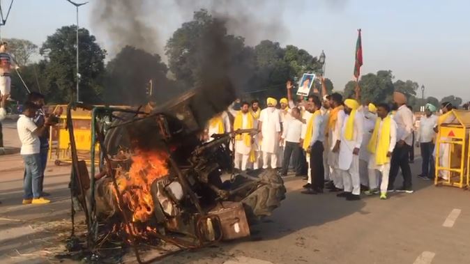 ਕਾਂਗਰਸ ਵਰਕਰਾਂ ਵੱਲੋਂ ਇੰਡੀਆਂ ਗੇਟ ਸਾਹਮਣੇ ਟਰੈਕਟਰ ਨੂੰ ਲਗਾਈ ਅੱਗ, 5 ਹਿਰਾਸਤ ‘ਚ