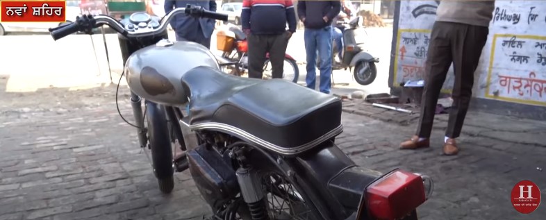 ਨਵਾਂਸ਼ਹਿਰ ਵਿੱਚ ਇੱਕ ਵੀਡੀਓ ਵਾਇਰਲ ਹੋ ਰਹੀ ਹੈ ਜਿਸ ਵਿੱਚ ਇੱਕ ਬੁਲਟ ਮੋਟਰਸਾਈਕਲ ਨੂੰ ਸਾਇਕਲ ਬਣਾ ਕੇ ਸ਼ਹਿਰ ਵਿੱਚ ਘੁੰਮਦੇ ਇੱਕ ਵਿਆਕਤੀ ਨੂੰ ਜਦੋਂ ਟਰੈਫਿਕ ਪੁਲਿਸ ਵਲੋਂ ਰੋਕਿਆ ਗਿਆ ਅਤੇ ਪੁਲਿਸ ਨੇ ਜਦੋਂ ਇਸ ਬੁਲਟ ਤੋਂ ਸਾਇਕਲ ਬਣਾਉਣ ਵਾਲੇ ਮਕੈਨਿਕ ਤੋਂ ਇਸ ਬਾਰੇ ਪੁਛਿਆ ਤਾਂ ਇਹ ਵੀਡੀਓ ਨਵਾਂਸ਼ਹਿਰ ਵਿੱਚ ਬੜੀ ਵਾਇਰਲ ਹੋਈ ।ਜੋ ਕਾਫੀ ਚਰਚਾ ਦਾ ਵਿਸ਼ਾ ਬਣੀ ਹੋਈ ਹੈ । ਨਵਾਂਸ਼ਹਿਰ ਦੇ ਇੱਕ ਆਟੋ ਸਰਵਿਸ ਦਾ ਕੰਮ ਕਰਨ ਵਾਲੇ ਮਕੈਨਿਕ ਨੇ ਰਾਇਲ ਇੰਨਫੀਲਡ ਮੋਟਰਸਾਈਕਲ ਨੂੰ ਨਵੀਂ ਤਕਨੀਕ ਨਾਲ ਇਸਨੂੰ ਸਾਇਕਲ ਵਾਲੇ ਪਾਰਟਸ ਲਗਾ ਕੇ ਇਸਦਾ ਇੱਕ ਸਾਇਕਲ ਬਣਾ ਲਿਆ। ਜਿਸਨੂੰ ਚਲਾਉਣ ਲਈ ਨਾ ਤਾਂ ਪੈਟਰੋਲ, ਨਾ ਹੀ ਡਰਾਇਵਿੰਗ ਲਾਇਸੈਂਸ, ਆਰ,ਸੀ,ਇੰਸ਼ੋਰੈਂਸ, ਪਲਿਊਸ਼ਨ ਸਰਟੀਫਿਕੇਟ ਅਤੇ ਨਾ ਹੀ ਹੈਲਮਟ ਦੀ ਜਰੂਰਤ ਹੈ ।ਮਕੈਨਿਕ ਹੁਸਨ ਲਾਲ ਬੰਗਾ ਨੇ ਮੀਡੀਆ ਨੂੰ ਦੱਸਿਆ ਕਿ ਉਹ ਪਿਛਲੇ ਤੀਹ ਤੋਂ ਮੋਟਰਸਾਈਕਲ ਠੀਕ ਕਰਨ ਦਾ ਕੰਮ ਕਰ ਰਿਹਾ ਹੈ ਉਸਦੀ ਦੁਕਾਨ ਉੱਤੇ ਇੱਕ ਬੁਲਟ ਮੋਟਰਸਾਈਕਲ ਜਿਸਦਾ ਇੰਜਨ ਨਹੀਂ ਸੀ ਜਿਸਦੀ ਉਹ ਇੱਕ ਡੰਮੀ ਬਣਾ ਕੇ ਆਪਣੀ ਦੁਕਾਨ ਦੇ ਬਾਹਰ ਖੜ੍ਹਾ ਕਰਨ ਦੀ ਸੋਚ ਰਿਹਾ ਸੀ ਤਾਂ ਉਸਦੇ ਇੱਕ ਦੋਸਤ ਨੇ ਕਿਹਾ ਕਿ ਕਿਉਂ ਨਾ ਇਸਦਾ ਸਾਇਕਲ ਬਣਾ ਦਿੱਤਾ ਜਾਵੇ।ਆਪਣੇ ਦੋਸਤ ਦੀ ਸਲਾਹ ਮੰਨ ਉਸ ਨੇ ਇੰਜਨ ਵਾਲੀ ਥਾਂ ਉੱਤੇ ਸਾਇਕਲ ਦਾ ਰਿੰਮ ਲਗਾ ਕੇ ਉਸਨੂੰ ਚਲਾਉਣ ਲਈ ਪੈਡਲ ਲਗਾ ਦਿੱਤੇ। ਮੋਟਰਸਾਈਕਲ ਵਿੱਚ ਬੈਟਰੀ ਰੱਖ ਇਸਦੀਆਂ ਹੈਡਲਾਇਟ,ਬੈਕ ਲਾਇਟ ਅਤੇ ਇੰਡੀਕੇਟਰ ਚਲਾ ਦਿੱਤੇ ਜਿਸ ਨਾਲ ਸੜਕ ਉੱਤੇ ਚਲਦਿਆਂ ਕੋਈ ਮੁਸ਼ਕਿਲ ਨਾਲ ਆਵੇ।ਮਕੈਨਿਕ ਨੇ ਦੱਸਿਆ ਕਿ ਇਸਨੂੰ ਚਲਾਉਣ ਲਈ ਨਾ ਕਿਸੇ ਡਰਾਇਵਿੰਗ ਲਾਈਸੈਂਸ, ਆਰ,ਸੀ,ਇੰਸ਼ੋਰੈਂਸ, ਪਲਿਊਸ਼ਨ ਸਰਟੀਫਿਕੇਟ, ਹੈਲਮੇਟ ਦੀ ਵੀ ਜਰੂਰਤ ਨਹੀਂ ਕਿਉਂਕਿ ਇਹ ਹੁਣ ਮੋਟਰਸਾਈਕਲ ਨਹੀਂ ਸਗੋਂ ਇੱਕ ਸਾਈਕਲ ਹੈ ।