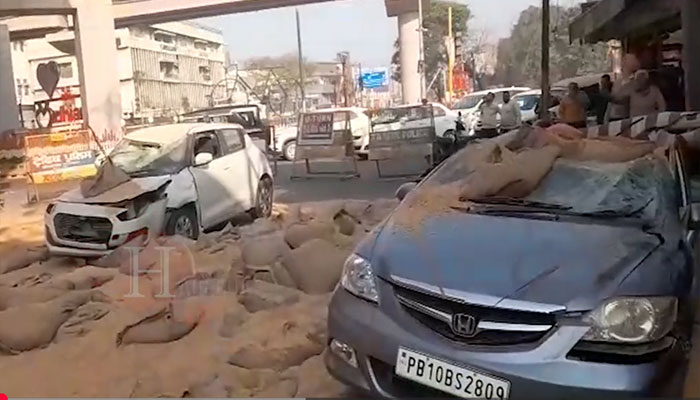 ਹੇਠਾਂ ਜਾ ਰਹੀਆਂ ਗੱਡੀਆਂ ਤੇ ਪਲਟੀਆਂ ਬੋਰੀਆਂ