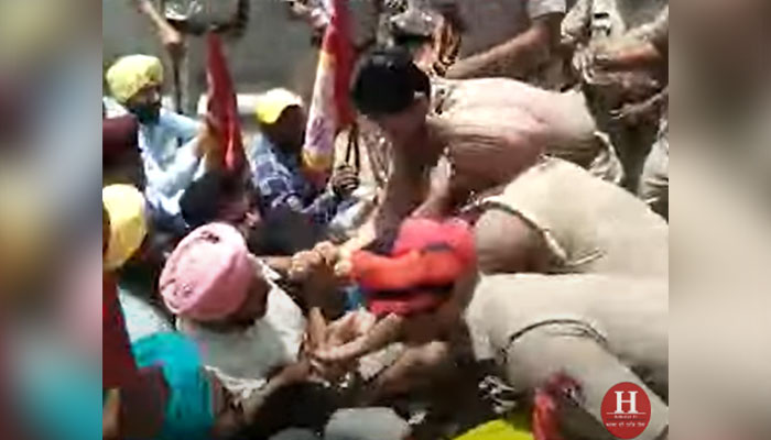 ਇਸ ਵੇਲੇ ਦੀ ਵੱਡੀ ਖ਼ਬਰ ਦਿੜਬਾ ਤੋਂ ਸਾਹਮਣੇ ਆ ਰਹੀ ਹੈ ਜਿਥੇ ਕਿ ਠੇਕਾ ਮੁਲਾਜ਼ਮ ਸੰਘਰਸ਼ ਮੋਰਚਾ ਆਪਣੀਆਂ ਮੰਗਾ ਨੂੰ ਲੈਕੇ CM ਮਾਨ ਖਿਲਾਫ ਰੋਸ ਪ੍ਰਦਸ਼ਨ ਕਰ ਰਹੇ ਸਨ ਤੇ ਸੜਕਾਂ ਤੇ ਉਤਰੇ ਸਨ ਕਿਉਂਕਿ ਅੱਜ CM ਮਾਨ ਵੱਲੋਂ ਦਿੜਬਾ ਚ ਤਹਿਸੀਲ ਕੰਪਲੈਕਸ ਦਾ ਨੀਂਹ ਪੱਥਰ ਰੱਖਿਆ ਜਾ ਰਿਹਾ ਸੀ, ਇਸ ਦੌਰਾਨ ਕੱਚੇ ਮੁਲਾਜ਼ਮਾਂ ਨੇ ਸਰਕਾਰ ਖਿਲਾਫ ਜ਼ੋਰਦਾਰ ਨਾਅਰੇਬਾਜ਼ੀ ਕਰ ਦਿੱਤੀ ! ਜਿਸਤੋ ਬਾਅਦ ਭਾਰੀ ਪੁਲਿਸ ਫੋਰਸ ਦੇ ਦਸਤਿਆਂ ਨੇ ਮੁਲਾਜ਼ਮਾਂ ਨੂੰ ਚੁੱਕਣਾ ਸ਼ੁਰੂ ਕਰ ਦਿੱਤਾ ! ਤਸਵੀਰਾਂ ਚ ਤੁਸੀਂ ਦੇਖ ਸਕਦੇ ਹੋ ਕਿ ਮਾਹੌਲ ਇੰਨਾ ਗਰਮ ਹੋ ਗਿਆ ਕਿ ਪੁਲਿਸ ਫੋਰਸ ਦੇ ਜਵਾਨ ਅਤੇ ਮੁਲਾਜ਼ਮ ਆਹਮੋ ਸਾਹਮਣੇ ਹੋ ਗਏ ! ਇਸ ਦੌਰਾਨ ਪੋਲਿਸ ਵੱਲੋ ਮੁਲਾਜ਼ਮਾਂ ਨਾਲ ਧੱਕਾ ਮੁੱਕੀ ਵੀ ਕੀਤੀ ਗਈ ! ਤਸਵੀਰਾਂ ਤੁਸੀਂ ਦੇਖ ਸਕਦੇ ਹੋ ਕਿ ਕਿਵੇਂ ਮੁਲਾਜ਼ਮ ਦੇ ਵਿਰੋਧ ਤੋਂ ਬਾਅਦ ਉਨ੍ਹਾਂ ਨੂੰ ਚੁੱਕ ਚੁੱਕ ਕੇ ਬੱਸ ਚ ਲੱਦਿਆ ਜਾ ਰਿਹਾ ਹੈ !