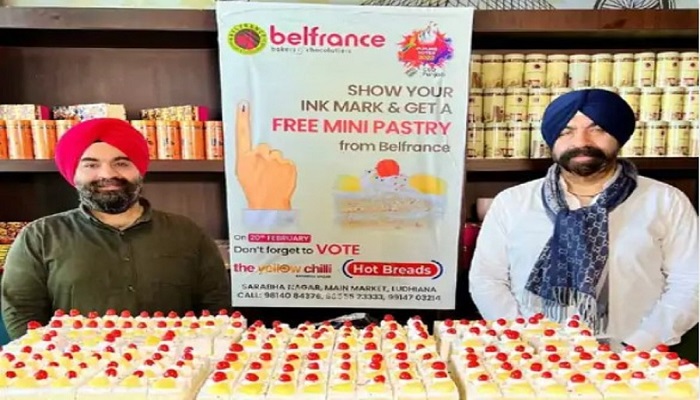 ਲੁਧਿਆਣਾ : – ਲੁਧਿਆਣਾ ਦੀ ‘ਬੇਲ ਫਰਾਂਸ’ ਬੇਕਰੀ ਦੇ ਮਾਲਕ ਹਰਜਿੰਦਰ ਸਿੰਘ ਕੁਕਰੇਜਾ ਨੇ ਲੋਕਾਂ ਨੂੰ ਵੋਟ ਪਾਉਣ ਲਈ ਉਤਸ਼ਾਹਿਤ ਕਰਨ ਲਈ ਅਨੋਖਾ ਫੈਸਲਾ ਲਿਆ ਹੈ। ਉਨ੍ਹਾਂ ਨੇ ਵੋਟ ਪਾਉਣ ਵਾਲੇ ਲੋਕਾਂ ਨੂੰ ਆਪਣੀ ਬੇਕਰੀ ਤੋਂ ਮੁਫਤ ਪੇਸਟਰੀਆਂ ਖੁਆਉਣ ਦਾ ਫੈਸਲਾ ਕੀਤਾ ਹੈ। ਉਨ੍ਹਾਂ ਦਾ ਕਹਿਣਾ ਹੈ ਕੇ ਜੋ ਲੋਕ ਵੋਟ ਪਾ ਕੇ ਆ ਰਹੇ ਹਨ ਉਹ ਆਪਣੇ ਵੋਟ ਪਾਉਣ ਦਾ ਨਿਸ਼ਾਨ ਦਿਖਾ ਕੇ ਮੁਫਤ ‘ਚ ਪੇਸਟਰੀਆਂ ਖਾ ਸਕਦੇ ਹਨ| ਹਰਜਿੰਦਰ ਨੇ ਇਸ ਦੀ ਤਸਵੀਰ ਵੀ ਸੋਸ਼ਲ ਮੀਡੀਆ ‘ਤੇ ਸ਼ੇਅਰ ਕੀਤੀ ਹੈ, ਲੋਕ ਉਨ੍ਹਾਂ ਦੀ ਇਸ ਪਹਿਲ ਨੂੰ ਕਾਫੀ ਪਸੰਦ ਕਰ ਰਹੇ ਹਨ।