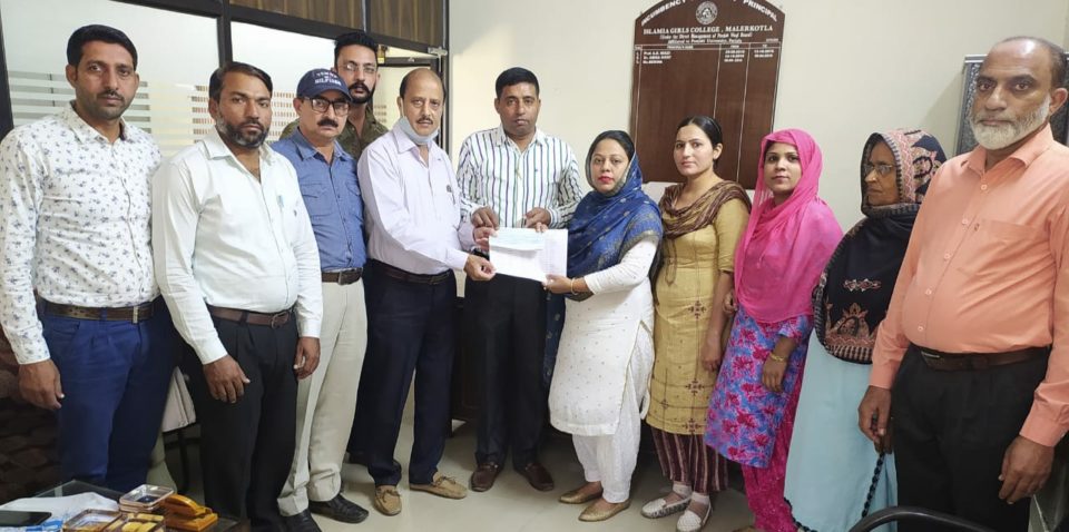 ਸਹਾਰਾ ਮੁਸਲਿਮ ਵੈੱਲਫੇਅਰ ਸੁਸਾਇਟੀ (ਰਜਿ) ਦੇ ਵੱਲੋਂ ਇਸਲਾਮਿਕ ਗਰਲ ਕਾਲਜ ਮਲੇਰਕੋਟਲਾ ‘ਚ ਬਹੁਤ ਸਾਰੇ ਜਰੂਰਤਮੰਦ ਬੱਚਿਆਂ ਦੇ ਲਈ ਤਕਰੀਬਨ 69.100 ਰੁਪਏ ਦੇ ਚੈੱਕ ਕਾਲਜ ਪ੍ਰਿੰਸੀਪਲ ਰੁਬੀਨਾ ਨੂੰ ਜਨਾਬ ਸਿਰਾਜਦੀਨ ਸਾਬਕਾ ਤਹਿਸੀਲਦਾਰ ਦੇ ਹੱਥੋਂ ਦਵਾਏ ਗਏ। ਇਸ ਮੌਕੇ ਪਹੁੰਚੇ ਸਹਾਰਾ ਮੁਸਲਿਮ ਵੈੱਲਫੇਅਰ ਸੁਸਾਇਟੀ ਦੇ ਸਰਪਰਸਤ ਹਾਜੀ ਅਬਦੁਲ ਗੁਫਾਰ, ਪ੍ਰਧਾਨ ਅਜ਼ਹਰ ਮੁਨੀਮ, ਜਰਨਲ ਸੈਕਟਰੀ ਮੁਹੰਮਦ ਗੁਲਜ਼ਾਰ, ਕੈਸ਼ੀਅਰ ਮੁਹੰਮਦ ਹਨੀਫ, ਰਮਜ਼ਾਨ ਸੋਨੀ ਅਤੇ ਹਾਜੀ ਹਨੀਫ ਨਾਲ ਰਹੇ। ਸਹਾਰਾ ਮੁਸਲਿਮ ਵੈਲਫੇਅਰ ਸੁਸਾਇਟੀ (ਰਜਿ) ਪਹਿਲਾਂ ਤਕਰੀਬਨ 14 ਸਾਲ ਤੋਂ ਵੈੱਲਫੇਅਰ ਦੇ ਕੰਮ ਕਰਦੀ ਆ ਰਹੀ ਹੈ।