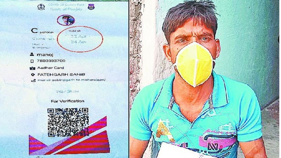 ਮੰਡੀ ਗੋਬਿੰਦਗੜ ਦੇ ਸ਼ਾਂਤੀ ਨਗਰ ਇਲਾਕੇ ਵਿੱਚ ਪ੍ਰਵਾਸੀ ਮਜ਼ਦੂਰ ਮਨੋਜ ਕੁਮਾਰ ਕਿਰਾਏ ਦੇ ਕਮਰੇ ਵਿੱਚ ਰਹਿ ਰਿਹਾ ਹੈ l ਉਹ ਮੂਲਰੂਪ ਵਿੱਚ ਪਿੰਡ ਚੰਦਰਿਕਾ, ਮਝੌਵਾ, ਮੁੰਡੇਰੀ ਮਹਾਰਾਗੰਜ, ਉੱਤਰ ਪ੍ਰਦੇਸ਼ ਦਾ ਨਿਵਾਸੀ ਹੈ l ਮਜ਼ਦੂਰ ਰੋਜ਼ੀ ਰੋਟੀ ਦੇ ਲਈ ਮੰਡੀ ਗੋਬਿੰਦਗੜ ਦੀ ਇੱਕ ਮਿੱਲ ਵਿੱਚ ਕੰਮ ਕਰਦਾ ਹੈ l ਕੁਝ ਦਿਨ ਪਹਿਲਾਂ ਹੀ ਉਸ ਨੂੰ ਉੱਤਰ ਪ੍ਰਦੇਸ਼ ਦੇ ਜ਼ਿਲ੍ਹਾ ਮਹਾਰਾਜਗੰਜ ਤੋਂ ਪਤਨੀ ਦਾ ਫੋਨ ਆਇਆ ਕਿ ਉਸ ਦੀ ਤਬੀਅਤ ਠੀਕ ਨਹੀਂ ਹੈ l ਇਹ ਸੁਣਦੇ ਹੀ ਮਨੋਜ ਨੇ ਜ਼ਿਲ੍ਹਾ ਫਤਿਹਗੜ ਸਾਹਿਬ ਪੰਜਾਬ ਵਿੱਚ ਆਨਲਾਈਨ ਕਰਫਿਊ ਪਾਸ ਦੇ ਲਈ ਅਪਲਾਈ ਕੀਤਾ ਤਾਂ ਤਿੰਨ ਵਾਰ ਪਾਸ ਰਿਜੈਕਟ ਹੋਣ ਦੇ ਬਾਅਦ ਉਸ ਦਾ ਪਾਸ ਬਣ ਗਿਆ l