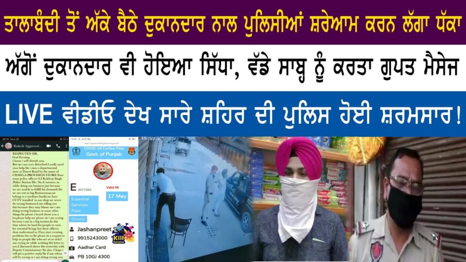 ਪੁਲਿਸ ਕਮਿਸ਼ਨਰ ਨੂੰ ਕੀਤੀ ਗਈ ਇਸ ਸ਼ਿਕਾਇਤ ਵਿੱਚ ਦੁਕਾਨਦਾਰ ਜਸ਼ਨਪ੍ਰੀਤ ਸਿੰਘ ਨੇ ਦੋਸ਼ ਲਾਏ ਨੇ ਕਿ ਐੱਸਆਈ ਕੁਲਦੀਪ ਸਿੰਘ ਉਸਦੀ ਦੁਕਾਨ ‘ਤੇ ਫ੍ਰੀ ‘ਚ ਸਮਾਨ ਲੈਣ ਆਇਆ ਸੀ, ਪਰ ਉਸਨੇ ਸਮਾਨ ਦੇਣ ਤੋਂ ਇਨਕਾਰ ਕਰ ਦਿੱਤਾ। ਜਿਸਦੇ ਬਾਅਦ ਐੱਸਆਈ ਕੁਲਦੀਪ ਸਿੰਘ ਨੇ ਉਸਨੂੰ ਨਾਜ਼ਾਇਜ ਪਰੇਸ਼ਾਨ ਕਰਨਾ ਸ਼ੁਰੂ ਕਰ ਦਿੱਤਾ। ਦੁਕਾਨਦਾਰ ਦਾ ਕਹਿਣੈ ਕਿ ਕੁਝ ਦਿਨ ਬਾਅਦ ਐੱਸਆਈ ਪੁਲਿਸ ਦੀ ਗੱਡੀ ‘ਚ ਆਪਣੇ ਸਾਥੀ ਮੁਲਾਜ਼ਮਾਂ ਨਾਲ ਆਇਆ ਅਤੇ ਕਰਫਿਊ ਪਾਸ ਦਿਖਾਉਣ ਦੇ ਬਾਵਜੂਦ ਉਸਨੂੰ ਜ਼ਬਰਦਸਤੀ ਗੱਡੀ ‘ਚ ਬਿਠਾ ਕੇ ਆਪਣੇ ਨਾਲ ਥਾਣੇ ਲੈ ਗਿਆ। ਜਿਸਦੀ ਲਾਈਵ ਵੀਡੀਓ ਦੁਕਾਨ ਦੇ ਬਾਹਰ ਲੱਗੇ ਸੀਸੀਟੀਵੀ ਕੈਮਰੇ ‘ਚ ਕੈਦ ਹੋ ਗਈ। ਥਾਣੇ ਜਾਕੇ ਜਦੋਂ ਦੁਕਾਨਦਾਰ ਜਸ਼ਨਪ੍ਰੀਤ ਸਿੰਘ ਨੇ ਪੁਲਿਸ ਦੇ ਸੀਨੀਅਰ ਅਧਿਕਾਰੀਆਂ ਨੂੰ ਫੋਨ ਕਰਨੇ ਸ਼ੁਰੂ ਕਰ ਦਿੱਤੇ ਤਾਂ 5 ਮਿੰਟ ਬਾਅਦ ਹੀ ਥਾਣੇਦਾਰ ਨੇ ਦੁਕਾਨਦਾਰ ਨੂੰ ਛੱਡ ਦਿੱਤਾ।